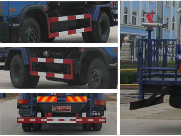 | 整車說明: | 罐體有效容積:7.14立方米;罐體外形尺寸(長/長軸/短軸)(mm):4200/2000/1250,后懸(mm):2000,2250與軸距(mm):4200,3950一一對應(yīng)。隨底盤選裝駕駛室(前部燈具及保險杠變化)。防護(hù)材料:Q235A碳鋼,連接方式:左右側(cè)面及后下部防護(hù)均采用焊接連接,后部防護(hù)斷面尺寸(mm):150×50×5,后部防護(hù)離地高度(mm):490。ABS生產(chǎn)廠家:東風(fēng)電子科技股份有限公司制動系統(tǒng)公司;型號:3631010-C2000 | ||