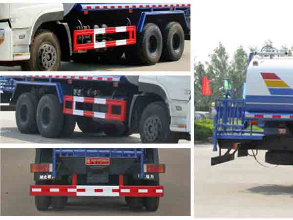 整車說明: 罐體有效容積:14.7立方米,運輸介質(zhì)為水,密度:1000千克/立方米;罐體外形尺寸(長/長軸/短軸)(mm):6500/2250/1450;軸距(mm):4350+1350對應(yīng)后懸(mm):2820,軸距(mm):4350+1300對應(yīng)后懸(mm):2870;額定載質(zhì)量(Kg):14000對應(yīng)駕駛員準乘人員3人,額定載質(zhì)量(Kg):14065對應(yīng)駕駛員準乘人員2人,隨底盤選裝高頂駕駛室,選裝高頂駕駛室頂部氣喇叭,對應(yīng)整車高度為(mm):3690;防護材料:Q235A碳鋼,連接方式:左右側(cè)面及后下部防護均采用焊接連接,后部防護斷面尺寸(mm):120×50×5,后部防護離地高度(mm):480。安裝帶ABS的底盤,ABS生產(chǎn)廠家:東風(fēng)電子科技股份有限公司制動系統(tǒng)公司;型號:3631010-C2000。