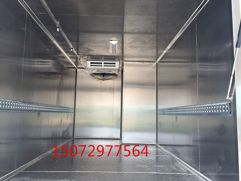 整車說明:該車廂體頂部封閉,不可開啟.選裝功率相當(dāng)?shù)闹评錂C(jī)組.側(cè)防護(hù)材料為冷板B-2.0,后防護(hù)材料為矩形管20-D-100×50×3,均為螺栓連接.后部防護(hù)裝置截面尺寸100mm×50mm,離地高度480mm.選裝新前圍,選裝新后視鏡,可選裝前下視鏡