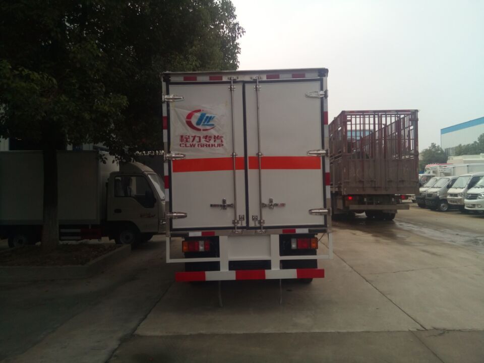 600P所有國四型號(hào)配120馬力五十鈴發(fā)動(dòng)機(jī)4KH1-TCG4O,都配置五十鈴MSB五檔變速器/冷暖空調(diào)/標(biāo)配方向助力/雙排前橋2噸,單排前橋2.5噸,后橋都是4.8噸/大噸位標(biāo)配700-16,選裝700R16/音響:帶USB接口收音機(jī)/車架截面:172*65*4+3mm/油剎帶真空助力泵/駕駛室不帶翻轉(zhuǎn)/轎車化內(nèi)飾 CLW5060XQYQ4型爆破器材運(yùn)輸車 產(chǎn)品主要技術(shù)參數(shù) | |||