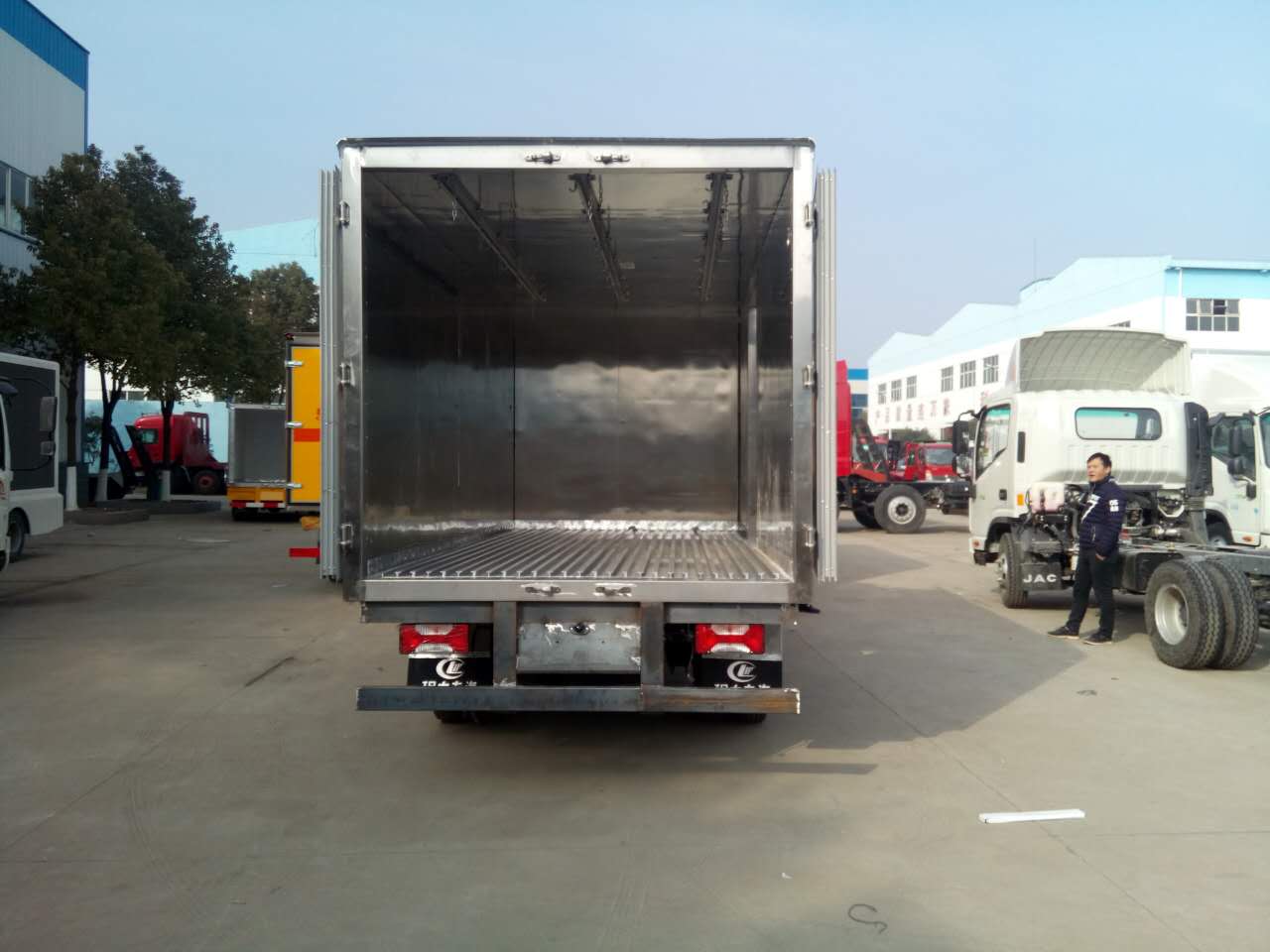 保溫箱體配置:箱體尺寸長×寬×高為:4050×1930×1900計14.8立方,廂體厚度為8厘米。內(nèi)外板材采用冷藏車專用玻璃鋼,(可反射陽光),中間夾層為聚氨酯發(fā)泡隔熱材料,(防火阻燃隔熱)千噸大型壓力機(jī)壓制而成,配件箱體全為不銹鋼鎖件,不銹鋼包角,不銹鋼門框,帶有頂燈及防撞塊。廂體內(nèi)部裝有照明燈和誤操作報警器,加裝鋁合金材質(zhì)導(dǎo)風(fēng)槽,導(dǎo)風(fēng)槽可是廂體底部均勻的吹到冷風(fēng)。我廠的冷藏保溫車保溫材料選用進(jìn)口級別XPS,吸水率≤1,導(dǎo)熱系數(shù)≤0.028W/mk,抗壓≥150Kpa,密度30~45kg/m3,使用國際上最為先進(jìn)的第五代全封閉聚氨酯板塊粘接結(jié)構(gòu),廂板表面材料有玻璃鋼、不銹鋼、鋁合金、彩鋼板等材料可供選擇,廂體成型后具有質(zhì)量輕,保溫系數(shù)高,抗沖擊力強(qiáng),無滲漏等優(yōu)點,對大氣、水和酸、堿、鹽等介質(zhì)具有良好的耐腐蝕性和抗老化性。通過優(yōu)化設(shè)計,降低了整車質(zhì)心,增大了有效容積。經(jīng)測試,整車綜合節(jié)能率,使用壽命,比一般冷藏保溫廂高1~2倍。
