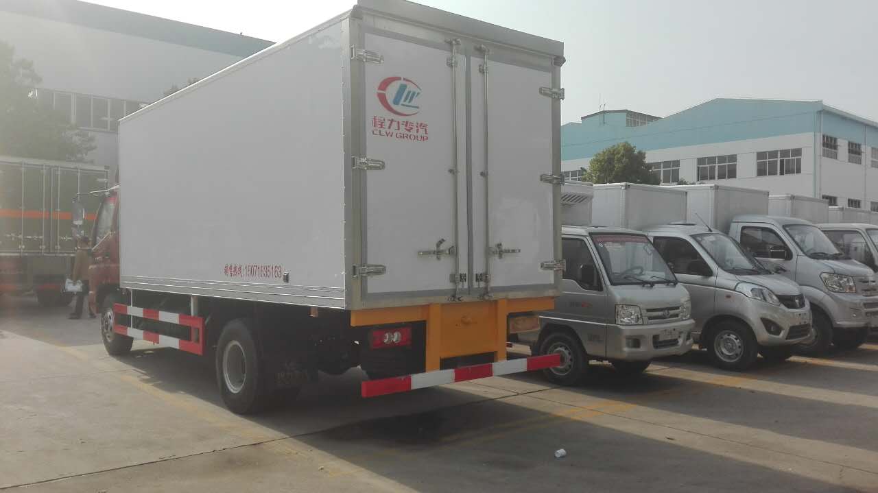 湖北程力特種廂式車廠高起點(diǎn)大投入,引進(jìn)目前國(guó)際最先進(jìn)冷藏車生產(chǎn)技術(shù)并斥巨資購(gòu)置先進(jìn)的發(fā)泡成型設(shè)備和18大型復(fù)合板材生產(chǎn)線,制造出新一代冷藏保溫車。生產(chǎn)的冷藏車廂體內(nèi)外壁板選用優(yōu)質(zhì)的玻璃鋼、不銹鋼或彩鋼板;中間保溫材料選用200px厚進(jìn)口聚氨酯擠塑板;廂體周邊鋁合金包邊;底板采用整體現(xiàn)澆玻璃鋼。采用新技術(shù)、新工藝制造的冷藏車具有保溫性能好、外型美觀、整體質(zhì)量輕、強(qiáng)度高、無(wú)滲漏等特點(diǎn)。廂板耐沖擊性好,對(duì)大氣、水和酸、堿、鹽等介質(zhì)具有良好的耐腐蝕性和抗老化性。經(jīng)過(guò)優(yōu)化設(shè)計(jì),大大降低廂底板離地面高度,增大了車廂的有效容積,車輛行駛的安全性更高。廂底板選裝通風(fēng)槽,便于冷氣流通全車,并保持廂內(nèi)溫度均衡。冷藏機(jī)組有知名的國(guó)產(chǎn)與進(jìn)口機(jī)組選擇,溫度可達(dá)深冷要求,機(jī)組具有結(jié)構(gòu)簡(jiǎn)單、操作方便運(yùn)行可靠、能耗低制冷量大,噪聲小安裝維護(hù)方便等特點(diǎn)。