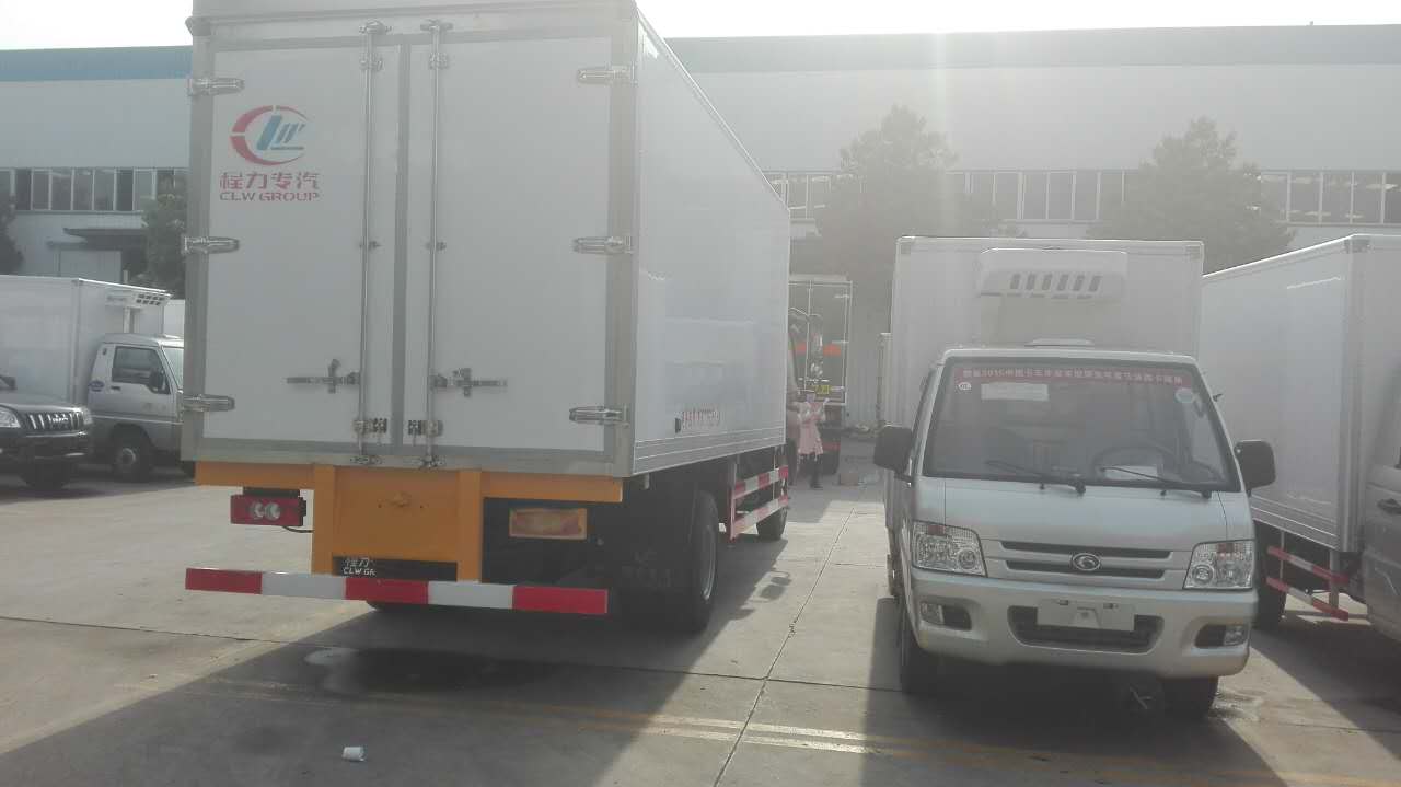 程力專用汽車股份有限公司,引進(jìn)目前國(guó)際最先進(jìn)冷藏車生產(chǎn)技術(shù)并斥巨資購(gòu)置先進(jìn)的發(fā)泡成型設(shè)備和18米大型復(fù)合板材生產(chǎn)線,制造出新一代冷藏保溫車。生產(chǎn)的冷藏車廂體內(nèi)外壁板選用優(yōu)質(zhì)的玻璃鋼、不銹鋼或彩鋼板;中間保溫材料選用200px厚進(jìn)口聚氨酯擠塑板;廂體周邊鋁合金包邊;底板采用整體現(xiàn)澆玻璃鋼。采用新技術(shù)、新工藝制造的冷藏車具有保溫性能好、外型美觀、整體質(zhì)量輕、強(qiáng)度高、無(wú)滲漏等特點(diǎn)。廂板耐沖擊性好,對(duì)大氣、水和酸、堿、鹽等介質(zhì)具有良好的耐腐蝕性和抗老化性。經(jīng)過(guò)優(yōu)化設(shè)計(jì),大大降低廂底板離地面高度,增大了車廂的有效容積,車輛行駛的安全性更高。廂底板選裝通風(fēng)槽,便于冷氣流通全車,并保持廂內(nèi)溫度均衡。冷藏機(jī)組有知名的國(guó)產(chǎn)與進(jìn)口機(jī)組選擇,溫度可達(dá)深冷要求,機(jī)組具有結(jié)構(gòu)簡(jiǎn)單、操作方便運(yùn)行可靠、能耗低制冷量大,噪聲小安裝維護(hù)方便等特點(diǎn)。