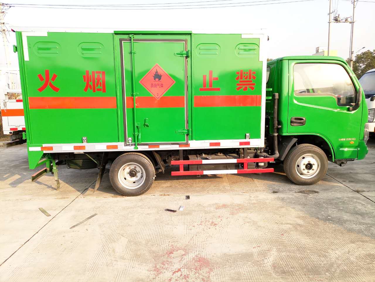 備注 | 廂體頂部封閉,不可開啟.運輸獨立容器包裝的易燃氣體氣瓶.運送危險貨物的品名為液化石油氣,丁烷,丙烷,打火機或打火機加油器,壓縮煤氣,壓縮氧。運送危險貨物類項號為:2.1,2.1,2.1,2.1,2.3,2.2.車身側面及后部粘貼橙色反光標識和標志牌;在車體后部設置安全標示;車輛顏色可選,文字噴涂位置可變化.選裝不帶側門,側門型式及位置;ABS系統(tǒng)控制器型號為APG3550500A6,ABS系統(tǒng)控制器生產(chǎn)企業(yè)為浙江亞太機電股份有限公司;配裝前輪盤式制動器;安裝限速裝置,限速80km/h;輔助制動裝置;前置消聲器;安裝具有衛(wèi)星定位功能的行駛記錄儀.僅選用子午線輪胎。隨底盤選裝駕駛室.整車長度/后懸/軸距/(mm)對應關系: 5400/1520/2800(mm);5050/1320/2650(mm)。 | ||