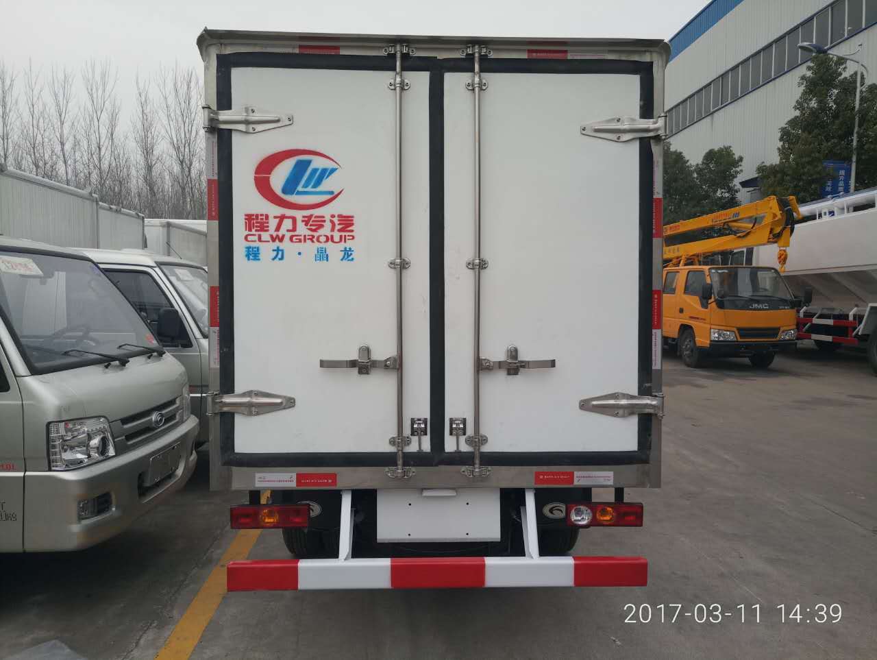 程力專用汽車股份有限公司,引進(jìn)目前國(guó)際最先進(jìn)冷藏車生產(chǎn)技術(shù)并斥巨資購(gòu)置先進(jìn)的發(fā)泡成型設(shè)備和18米大型復(fù)合板材生產(chǎn)線,制造出新一代冷藏保溫車。生產(chǎn)的冷藏車廂體內(nèi)外壁板選用優(yōu)質(zhì)的玻璃鋼、不銹鋼或彩鋼板;中間保溫材料選用200px厚進(jìn)口聚氨酯擠塑板;廂體周邊鋁合金包邊;底板采用整體現(xiàn)澆玻璃鋼。采用新技術(shù)、新工藝制造的冷藏車具有保溫性能好、外型美觀、整體質(zhì)量輕、強(qiáng)度高、無滲漏等特點(diǎn)。廂板耐沖擊性好,對(duì)大氣、水和酸、堿、鹽等介質(zhì)具有良好的耐腐蝕性和抗老化性。經(jīng)過優(yōu)化設(shè)計(jì),大大降低廂底板離地面高度,增大了車廂的有效容積,車輛行駛的安全性更高。廂底板選裝通風(fēng)槽,便于冷氣流通全車,并保持廂內(nèi)溫度均衡。冷藏機(jī)組有知名的國(guó)產(chǎn)與進(jìn)口機(jī)組選擇,溫度可達(dá)深冷要求,機(jī)組具有結(jié)構(gòu)簡(jiǎn)單、操作方便運(yùn)行可靠、能耗低制冷量大,噪聲小安裝維護(hù)方便等特點(diǎn)。