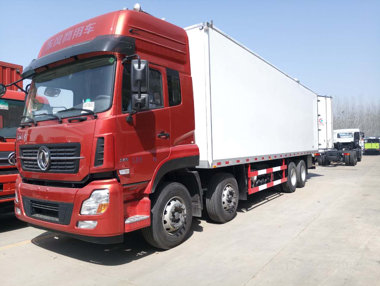 天龍國五9米6冷藏車技術(shù)參數(shù) 東風(fēng)天龍國五高頂雙臥駕駛室,東風(fēng)康明斯340馬力國五柴油發(fā)動(dòng)機(jī),12檔變速箱,空調(diào),助力,ABS,行駛記錄儀,11.00鋼絲胎,5噸雙前橋,10噸雙后橋。 | |||