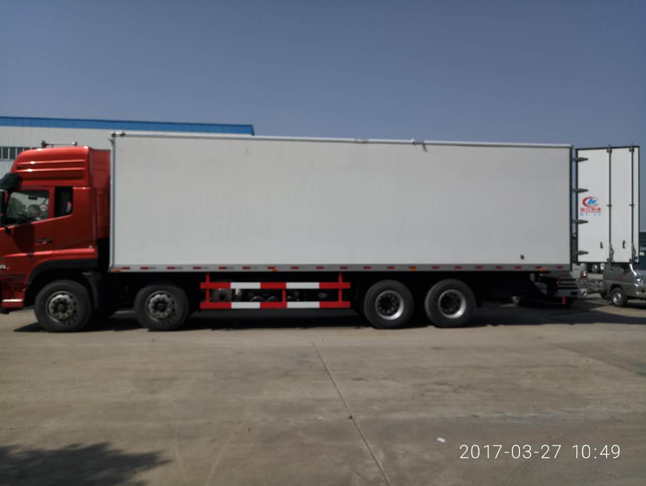 程力專用汽車股份有限公司,引進(jìn)目前國際最先進(jìn)冷藏車生產(chǎn)技術(shù)并斥巨資購置先進(jìn)的發(fā)泡成型設(shè)備和18米大型復(fù)合板材生產(chǎn)線,制造出新一代冷藏保溫車。生產(chǎn)的冷藏車廂體內(nèi)外壁板選用優(yōu)質(zhì)的玻璃鋼、不銹鋼或彩鋼板;中間保溫材料選用200px厚進(jìn)口聚氨酯擠塑板;廂體周邊鋁合金包邊;底板采用整體現(xiàn)澆玻璃鋼。采用新技術(shù)、新工藝制造的冷藏車具有保溫性能好、外型美觀、整體質(zhì)量輕、強(qiáng)度高、無滲漏等特點(diǎn)。廂板耐沖擊性好,對(duì)大氣、水和酸、堿、鹽等介質(zhì)具有良好的耐腐蝕性和抗老化性。經(jīng)過優(yōu)化設(shè)計(jì),大大降低廂底板離地面高度,增大了車廂的有效容積,車輛行駛的安全性更高。廂底板選裝通風(fēng)槽,便于冷氣流通全車,并保持廂內(nèi)溫度均衡。冷藏機(jī)組有知名的國產(chǎn)與進(jìn)口機(jī)組選擇,溫度可達(dá)深冷要求,機(jī)組具有結(jié)構(gòu)簡單、操作方便運(yùn)行可靠、能耗低制冷量大,噪聲小安裝維護(hù)方便等特點(diǎn)。