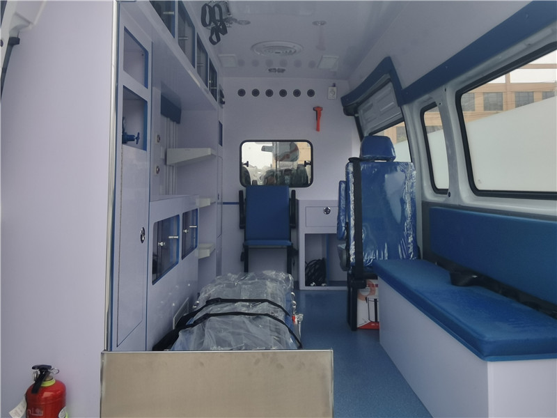 車輛醫(yī)療艙內部配備呼吸機、除顫儀、吸引器、輸液泵、推注泵、擔架床、樓梯擔架、鏟式擔架、脊椎固定板、輸液掛架等急救設備(可選配),并為安裝心肺復蘇儀、真空擔架、循環(huán)系統(tǒng)急救箱、呼吸系統(tǒng)急救箱等醫(yī)療設備提供充裕放置空間。呼吸機、監(jiān)護儀、吸引器等急救設備配有專用的電源系統(tǒng)和插座。