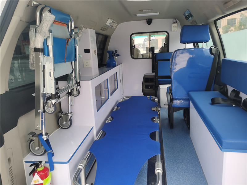 帶可推拉玻璃窗戶,1.醫(yī)療艙隔斷后部安裝沃克板材醫(yī)療器,1. 醫(yī)療艙右側(cè)正向安裝獨立靠背座椅 2. 醫(yī)療艙右側(cè) 2 人長條軟包座椅及安全帶 3. 醫(yī)療艙左側(cè)安裝翻轉(zhuǎn)式長條座椅,全車安裝隱藏式安全預埋件,采用藍色環(huán)保型耐磨、防滑醫(yī)療地板及墊層,配備折疊擔架,滅火器,醫(yī)用垃圾桶等。