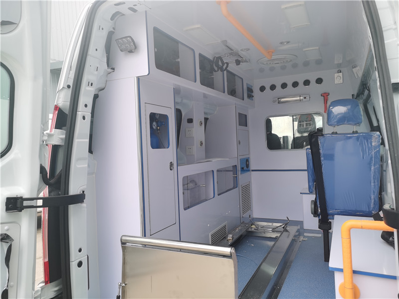 江鈴全順V362國六監(jiān)護型救護車身上采用了采用承載式硼鋼強化車身,車身結構更穩(wěn)定,安全性能更強。車門處配備自動迎賓踏板,跟隨車門自動開啟收回,并帶有LED燈帶方便夜晚上下車。內飾方面,該車內部整體采用了黑色為主色調,中控臺功能布局清晰簡潔,座椅為織物面料包覆,內飾風格同樣符合救護車以實用為主的定位。同時車輛醫(yī)療艙配置上,可選裝配備呼吸機、除顫儀、吸引器、輸液泵、推注泵、擔架床、樓梯擔架、鏟式擔架、脊椎固定板、輸液掛架等急救設備,并為安裝心肺復蘇儀、真空擔架、循環(huán)系統(tǒng)急救箱、呼吸系統(tǒng)急救箱等醫(yī)療設備提供充裕放置空間。