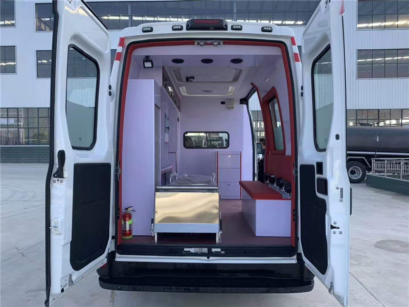 車底、側(cè)壁等加強(qiáng)預(yù)埋件1,全車隔熱、隔音材料1,車內(nèi)地板采用進(jìn)口耐酸、堿、防火、防滑、防靜電地板1,駕駛室與醫(yī)療艙安裝異型分隔墻(含一體式鋼化玻璃推拉窗)1,前后對講機(jī)1,車頂排風(fēng)扇1,醫(yī)療艙隔墻后折疊醫(yī)生看護(hù)座椅1,表面覆紅色或藍(lán)色皮革1,醫(yī)療艙左側(cè)藥品、器械儲物柜1,醫(yī)療艙左側(cè)吊柜1,隔墻后急救箱儲存柜(根據(jù)艙內(nèi)長度選擇)1,醫(yī)療艙左側(cè)卷簾門儲物柜1,左側(cè)安裝10L鋁制氧氣瓶及方便拆卸固定架2,氧氣流量及壓力閥2,氧氣終端2,終端濕化瓶1,醫(yī)療艙內(nèi)右側(cè)安裝有安全帶的三人PVC材料柜式床,座墊及靠背表面用皮革包覆1,醫(yī)療艙內(nèi)頂部滑動輸液瓶架1,頂部黃色安全扶手1,醫(yī)療艙安裝(國產(chǎn))自動上車擔(dān)架1,上車擔(dān)架不銹鋼板導(dǎo)板1,后門左內(nèi)側(cè)安裝鏟式擔(dān)架(或在柜式床內(nèi)存放)1,不銹鋼污物桶1,醫(yī)療艙中門、尾門防撞頭靠1,滅火器,醫(yī)療艙左側(cè)黑色玻璃膜1,右側(cè)2/3磨砂膜1,車身腰部紅色/藍(lán)色強(qiáng)效反光帶。