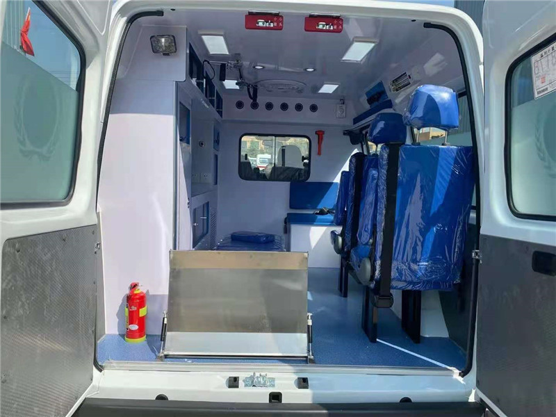 江鈴特順國(guó)六救護(hù)車醫(yī)療艙配置:足額100W警報(bào)器含主機(jī)與手柄(內(nèi)置式醫(yī)療專用),車身頂部安裝長(zhǎng)排藍(lán)色LED強(qiáng)光雙閃警燈,整車采用原車標(biāo)準(zhǔn)鋼制車身,醫(yī)療艙左側(cè)安裝10升直連式氧氣瓶(帶壓力閥、濕化瓶),醫(yī)療艙頂部隱藏式可折疊輸液架,醫(yī)療艙采用耐酸、堿、防火、防滑、防靜電的醫(yī)用地板,醫(yī)療艙左側(cè)安裝上車擔(dān)架,定制引導(dǎo)平臺(tái)(擔(dān)架下方和車輛保險(xiǎn)杠必要位置安裝不銹鋼覆層及L折邊,防止地板、柜邊、保險(xiǎn)杠損壞),醫(yī)療艙單邊按需安置座椅,含扶手、三點(diǎn)式安全帶,或單邊長(zhǎng)排座椅,醫(yī)療艙配置1KG滅火器及支架,醫(yī)療艙原車內(nèi)飾,全艙柜體采用高分子環(huán)保防火、阻燃、耐酸堿的光面材料,醫(yī)療艙安裝自動(dòng)紫外光滅菌燈(全自動(dòng)延時(shí)、定時(shí)系統(tǒng))