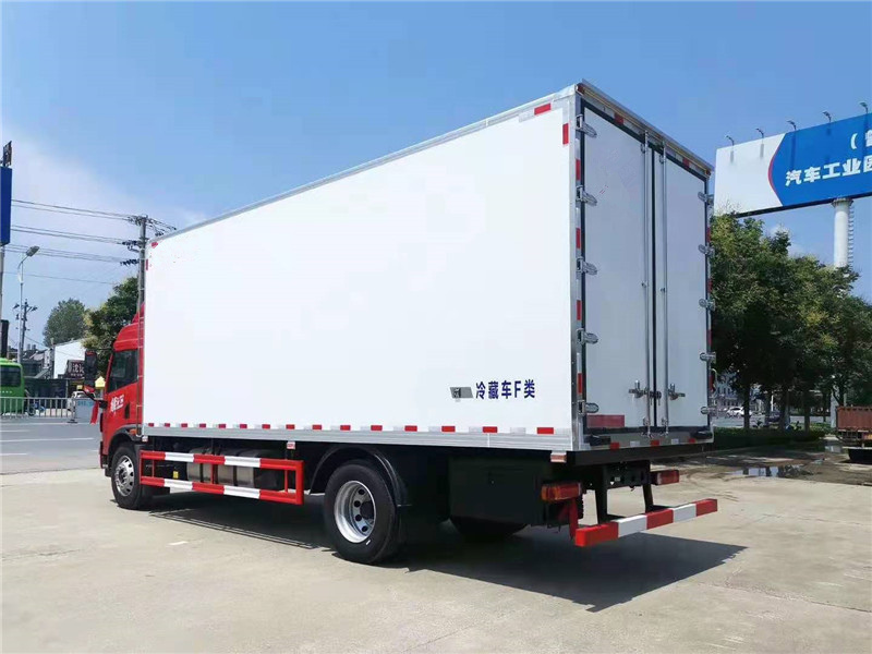 解放麟VH國六6米8冷藏車上裝配置:整車尺寸:9150x2600x3995(mm),箱內(nèi)尺寸:6750x2450x2500(mm),斷橋隔熱工藝、整體結(jié)構(gòu)框架;內(nèi)外玻璃鋼板夾聚氨酯保溫層真空復合而成,底板為玻璃鋼板,箱體副駕駛邊開側(cè)門,地板加裝加厚矩形通風槽,龍骨斷橋為松木復合板;木質(zhì)隔溫結(jié)構(gòu);廂體厚度為8cm;不銹鋼包角;最新款鋁合金包邊型材;廂體內(nèi)部安裝2個LED照明燈;后門框為2mm厚不銹鋼材質(zhì);門框密封條為橡膠材質(zhì);加厚型不銹鋼鉸鏈及鎖件;箱體內(nèi)部可根據(jù)用戶實際需求選擇肉鉤導軌,地板通風槽,溫濕度記錄儀,攔貨槽等專用設(shè)備。制冷設(shè)備可選擇國產(chǎn)凱雪,颶豐,進口開利或冷王制冷機組。