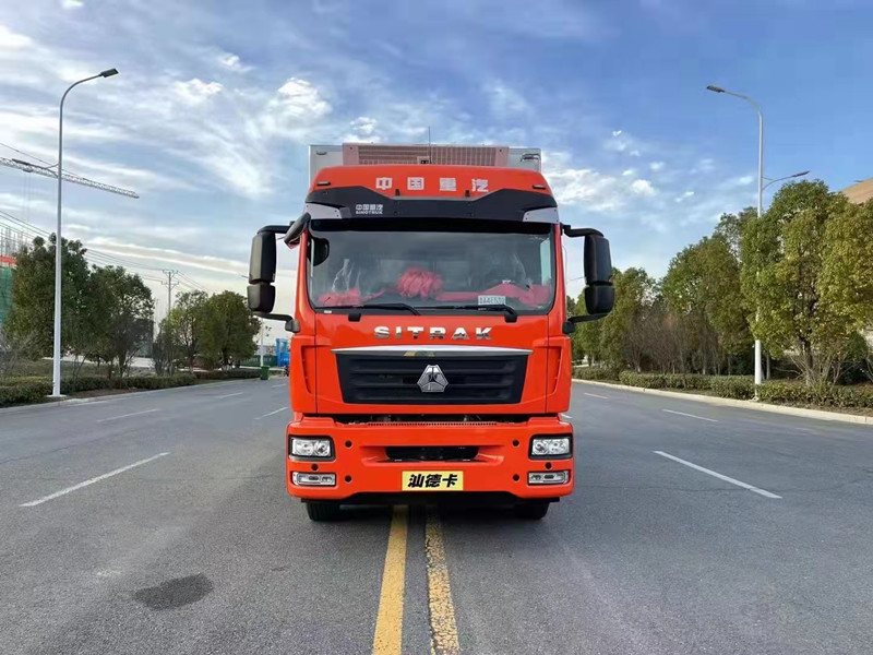 汕德卡國六6米8冷藏車特點(diǎn):整車的設(shè)計風(fēng)格和自家大哥汕德卡C7H非常相似,在眉宇間也可以看到一些德國MAN TGM載貨車的影子,外觀風(fēng)格比較硬朗,充滿了德國工業(yè)風(fēng)格的味道。中國重汽四個大字印刻在車頂,展示了自己的身份,同時駕駛室為四氣囊懸掛,提升了行駛在路況較差區(qū)域的駕駛艙舒適性。后視鏡采用了一體式后視鏡的結(jié)構(gòu),使用了不同于橘色車身的黑色材質(zhì),與車身形成拼色設(shè)計,提升了前臉的時尚感。該車采用了一體式后視鏡的設(shè)計,相比于常見鐵支架后視鏡美觀許多。