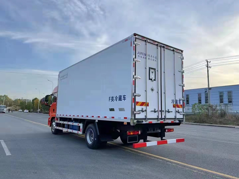 冷藏車廂生產(chǎn)線是國際最先進(jìn)18米大型復(fù)合板材生產(chǎn)線,壓板臺面生產(chǎn)前機(jī)器自動吸塵干凈,保證壓板機(jī)一次壓制成型,其生產(chǎn)設(shè)備及技術(shù)均領(lǐng)先同行業(yè)標(biāo)準(zhǔn),箱體外形美觀,整體質(zhì)量輕,強(qiáng)度高,無滲漏特點(diǎn),箱體堅固耐用,保溫效果高,采用國際通用三明治工藝+我廠專利木質(zhì)工藝(龍骨連接鑲?cè)氕h(huán)保防水木材起保溫耐腐蝕作用)、斷橋隔熱技術(shù),保溫效果達(dá)到國家A級標(biāo)準(zhǔn)。箱體內(nèi)部選裝底板通風(fēng)槽,頂部肉鉤導(dǎo)軌,內(nèi)部全不銹鋼配置,溫濕度記錄儀等冷藏專用設(shè)備。制冷設(shè)備可選擇國產(chǎn)或進(jìn)口非獨(dú)立機(jī)組,選裝進(jìn)口開利S750,冷王T88獨(dú)立制冷機(jī)組,最低溫度可達(dá)-15度,可根據(jù)運(yùn)輸貨物要求進(jìn)行調(diào)節(jié)。