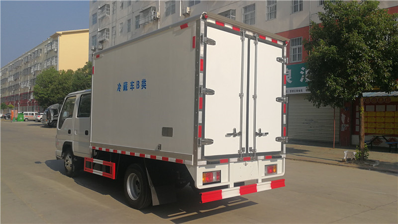 五十鈴藍(lán)牌海鮮冷鏈運(yùn)輸車上裝配置:保溫箱體內(nèi)尺寸:3150×1750×1750mm,廂體厚度80mm,采用斷橋隔熱工藝,整體框架結(jié)構(gòu)制作,廂體內(nèi)、外壁材料為玻璃鋼板,廂板內(nèi)帶有骨架,門框,門飾件、包角全部使用不銹鋼材質(zhì)。最新款鋁合金包邊型材,廂體內(nèi)采用LED照明燈及廂體示寬燈;門框密封條為橡膠材質(zhì),后門梁帶加厚防撞塊,加厚型不銹鋼鉸鏈及鎖件。車體副梁采用510L高強(qiáng)度鋼制作。底板為新型材質(zhì)花紋板,其余標(biāo)配,最低溫度可達(dá)零下15度,可根據(jù)實(shí)際使用需求自由調(diào)節(jié),控制器在駕駛室控制。隨車提供機(jī)動(dòng)車發(fā)票、保修手冊(cè)、隨車工具,帶整車合格證。