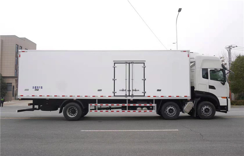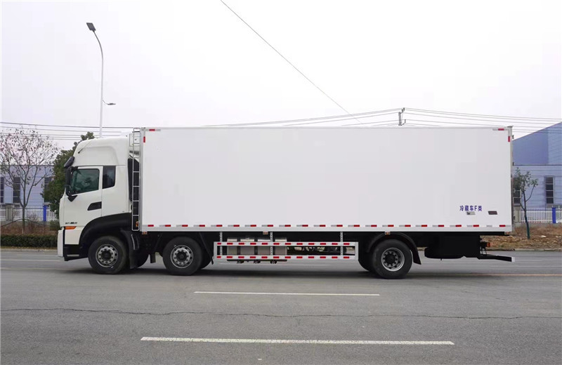 冷藏車箱體是采用國際通用三明治工藝+我廠專利木質(zhì)工藝(龍骨連接鑲?cè)氕h(huán)保防水木材起保溫耐腐蝕作用)、斷橋隔熱技術(shù)!冷藏車廠生產(chǎn)線是國際最先進18米大型復合板材生產(chǎn)線,壓板臺面生產(chǎn)前機器自動吸塵干凈,保證壓板機一次壓制成型,其生產(chǎn)設備及技術(shù)均領(lǐng)先同行業(yè)標準,箱體外形美觀,整體質(zhì)量輕,強度高,無滲漏特點,箱體堅固耐用,保溫效果高,保溫效果達到國家A級標準。冷藏廂體內(nèi)部選裝肉鉤導購,地板通風槽,溫濕度記錄儀等專用配置,制冷設備可選裝進口美國冷王T880,進口開利750獨立制冷機組,最低溫度可達-18度,可根據(jù)運輸貨物要求進行調(diào)節(jié)。