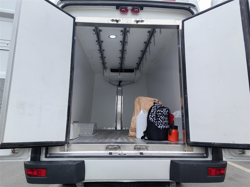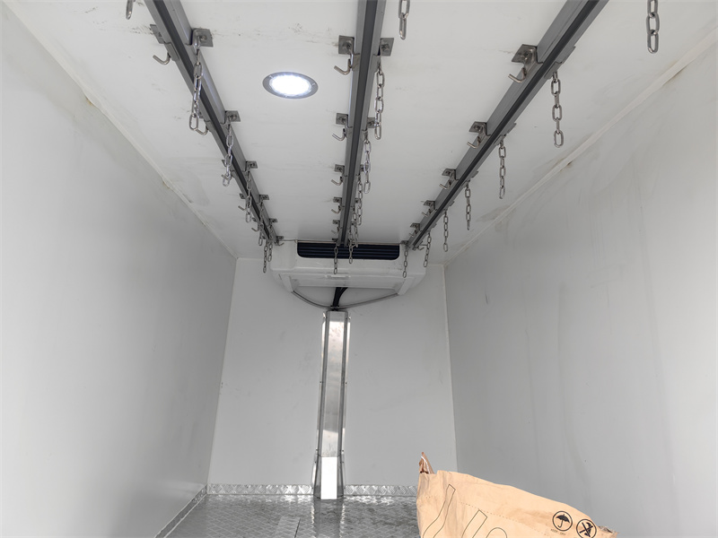 肉鉤車頂部預(yù)埋龍門架結(jié)構(gòu),加強(qiáng)頂部承載能力。頂部3排肉鉤導(dǎo)軌,配30個(gè)不銹鋼雙面肉鉤,地板選裝通風(fēng)槽,選裝溫濕度記錄儀。制冷設(shè)備安裝國產(chǎn)凱利350D冷凍制冷機(jī)組,最低溫度可達(dá)-18度,可根據(jù)運(yùn)輸貨物的實(shí)際需求進(jìn)行調(diào)節(jié),可選裝進(jìn)口開利或冷王制冷機(jī)組。