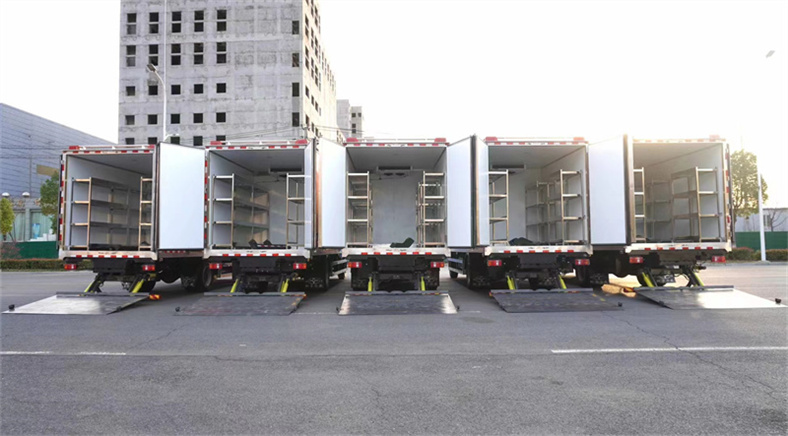 廂體中間安裝有溫控隔溫板,多用途隔離,雙溫雙控,前面冷凍后面冷藏。箱體內(nèi)部可選裝地板鋁合金通風槽,可滿焊,溫濕度記錄儀,肉鉤導(dǎo)軌等專用設(shè)備,制冷設(shè)備安裝進口冷王,開利獨立制冷機組,最低溫度可達-18噸,可根據(jù)運輸貨物要求進行溫度調(diào)節(jié),尾部安裝凱卓立1.5噸液壓尾板。鋁合金側(cè)防護,箱體內(nèi)部安裝不銹鋼貨架,方便放置水果蔬菜,廂體可根據(jù)使用單位需求打印logo廣告.