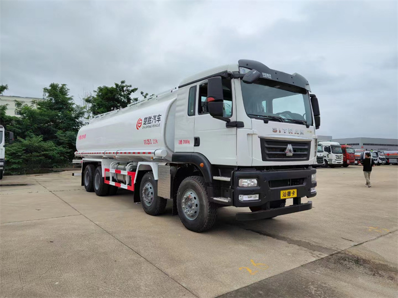 汕德卡前四后八礦山供液車特點: 汕德卡前四后八礦山供液車碳鋼鋼板的拼焊采用同行業(yè)最先進的全自動拼焊機完成,焊縫平整均勻,質(zhì)量可靠,罐體具有受力科學(xué),不滲漏,外型美觀,直線度好,耐用等特點,罐內(nèi)按國家標準安裝有多道設(shè)計科學(xué)合理的加強型防浪波紋隔板,可用于礦山復(fù)雜的路況,罐體采用噴涂高分子防腐底漆和金屬面漆,附著力強,耐腐性好,漆膜均勻,色彩光亮持久,提高美觀程度,能夠承受潮濕、多塵、鹽霧等不良環(huán)境。