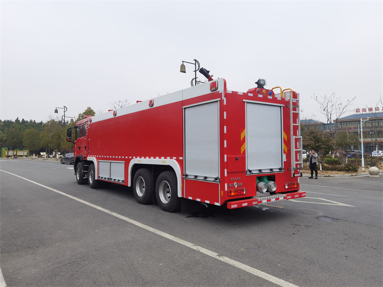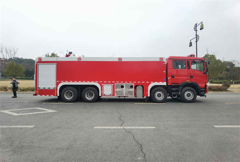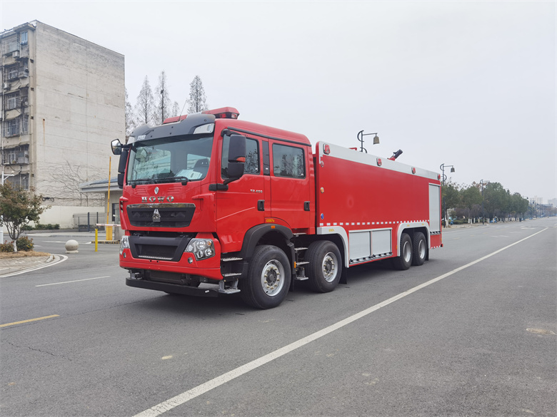 重汽豪沃25噸水罐消防車消防炮型號:PS80型消防炮,流量:80(L/s),射程:水≥80m,壓力:0.8MPa位置:位于水罐頂部。控制:采用手動控制,帶鎖止機構(gòu),方便操作。