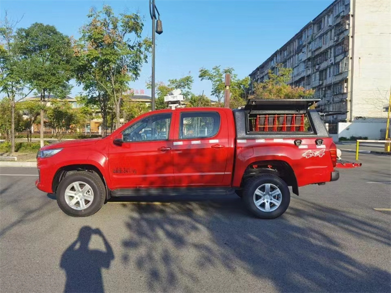 福田大將軍皮卡應急指揮通信車車輛配置:福田大將軍雙排皮卡車身,顏色為消防紅,福田163馬力發(fā)動機,3110軸距,4*4驅動,發(fā)動機防盜、塑料油箱:76L、12L尿素罐、80A·h免維護蓄電池,采埃孚8AT變速箱、265/65R17、胎壓監(jiān)測系統(tǒng)、鋁合金輪輞、多功能方向盤、前盤后鼓制動器、手剎、ABS+EBD、晝行燈、防炫目內后視鏡、仿皮座椅,雙安全氣囊、冷暖一體,電動空調、定速巡航、手機映射、后拖車電器接口、BA剎車輔助203前保險杠、折疊扶手形式、中間兩點式安全帶、一鍵啟動功能、遠近光一體式透鏡大燈(鍍鋁)鹵素大燈。