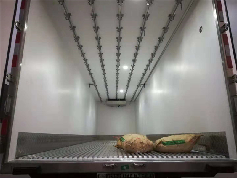 歐曼GTL高頂前四后八9米6冷藏車標準配置:箱體尺寸長×寬×高為:94280×2400×2500約56.5立方,廂體采用程力晶龍新工藝制作。冷藏廂體內外板材采用冷藏車專用玻璃鋼,(可反射陽光),中間夾層為8CM聚氨酯發(fā)泡隔熱材料,(防火阻燃隔熱),千噸壓機廂板生產線壓制而成,配置箱體全為不銹鋼鎖件,不銹鋼包角,不銹鋼門框,帶有頂燈及防撞塊。廂體底部為玻璃鋼板,加裝鋁合金材質的通風槽。我廠的冷藏保溫車保溫材料選用進口級別XPS,吸水率≤1,導熱系數(shù)≤0.028W/mk,抗壓≥150Kpa,密度30~45kg/m3,使用國際上最為先進的第五代全封閉聚氨酯板塊粘接結構,廂板表面材料有玻璃鋼、不銹鋼、鋁合金、彩鋼板等材料可供選擇,廂體成型后具有質量輕,保溫系數(shù)高,抗沖擊力強,無滲漏等優(yōu)點,對大氣、水和酸、堿、鹽等介質具有良好的耐腐蝕性和抗老化性 。通過優(yōu)化設計,降低了整車質心,增大了有效容積。經測試,整車綜合節(jié)能率,使用壽命,比一般冷藏保溫廂高1~2倍。 冷藏機組:采用美國冷王T900獨立制冷機組,冷藏效果好,降溫快,最低溫度可達零下15度,可按需求自由調節(jié).