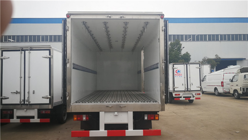 五十鈴國(guó)五5米2豬白條肉掛鉤冷藏車標(biāo)準(zhǔn)配置: 整車尺寸5040×1840×1800約16.7立方,廂體厚度為8厘米。內(nèi)外板材采用冷藏車專用玻璃鋼,(可反射陽(yáng)光),中間夾層為聚氨酯發(fā)泡隔熱材料,(防火阻燃隔熱)真空復(fù)合粘接而成,配置箱體全為不銹鋼鎖件,不銹鋼包角,不銹鋼門框,帶有頂燈及防撞塊。廂體底部為鋁花紋板。我廠的冷藏保溫車保溫材料選用進(jìn)口級(jí)別XPS,吸水率≤1,導(dǎo)熱系數(shù)≤0.028W/mk,抗壓≥150Kpa,密度30~45kg/m3,使用國(guó)際上最為先進(jìn)的第五代全封閉聚氨酯板塊粘接結(jié)構(gòu),廂板表面材料有玻璃鋼、不銹鋼、鋁合金、彩鋼板等材料可供選擇,廂體成型后具有質(zhì)量輕,保溫系數(shù)高,抗沖擊力強(qiáng),無(wú)滲漏等優(yōu)點(diǎn),對(duì)大氣、水和酸、堿、鹽等介質(zhì)具有良好的耐腐蝕性和抗老化性 。通過(guò)優(yōu)化設(shè)計(jì),降低了整車質(zhì)心,增大了有效容積。經(jīng)測(cè)試,整車綜合節(jié)能率,使用壽命,比一般冷藏廂保溫高1~2倍。箱體采用加強(qiáng)型骨架,承載性能好,箱體加裝4排肉鉤導(dǎo)軌,80個(gè)不銹鋼肉鉤。 五十鈴國(guó)五5米2豬白條肉掛鉤冷藏車優(yōu)點(diǎn):搭載全球領(lǐng)先的五十鈴4H柴油發(fā)動(dòng)機(jī),175馬力。與國(guó)內(nèi)同類車型比較,具有馬力大、自重輕、油耗低、使用壽命長(zhǎng)、舒適、安全、環(huán)保、全壽命成本低等綜合優(yōu)勢(shì),它的亮點(diǎn): 慶鈴生產(chǎn)的五十鈴系列物流運(yùn)輸車,完全體現(xiàn)了五十鈴最新的開(kāi)發(fā)理念。慶鈴已成為五十鈴全球重要的生產(chǎn)基地。慶鈴?fù)耆心芰槲锪髌髽I(yè)提供可靠保障的物流用車。