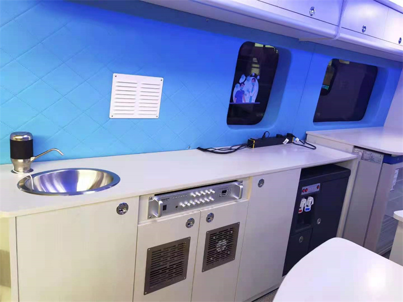 醫(yī)療輔助系統(tǒng),車載冰箱,最低溫度-10℃,車載飲水機 供醫(yī)務人員使用,洗手池系統(tǒng),電動水龍頭,不銹鋼水池,凈水桶,遮陽棚,可伸縮。