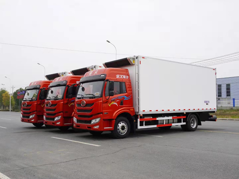 冷藏車箱體是采用國(guó)際通用三明治工藝+我廠專利木質(zhì)工藝(龍骨連接鑲?cè)氕h(huán)保防水木材起保溫耐腐蝕作用)、斷橋隔熱技術(shù)!生產(chǎn)線是國(guó)際最先進(jìn)18米大型復(fù)合板材生產(chǎn)線,壓板臺(tái)面生產(chǎn)前機(jī)器自動(dòng)吸塵干凈,保證壓板機(jī)一次壓制成型,其生產(chǎn)設(shè)備及技術(shù)均領(lǐng)先同行業(yè)標(biāo)準(zhǔn),箱體外形美觀,整體質(zhì)量輕,強(qiáng)度高,無(wú)滲漏特點(diǎn),箱體堅(jiān)固耐用,保溫效果高,保溫效果達(dá)到國(guó)家A級(jí)標(biāo)準(zhǔn)。選裝國(guó)產(chǎn)非獨(dú)立冷機(jī),選裝進(jìn)口開(kāi)利或冷王獨(dú)立制冷機(jī)組。最低溫度可達(dá)-18度,可根據(jù)需求進(jìn)行調(diào)節(jié)。